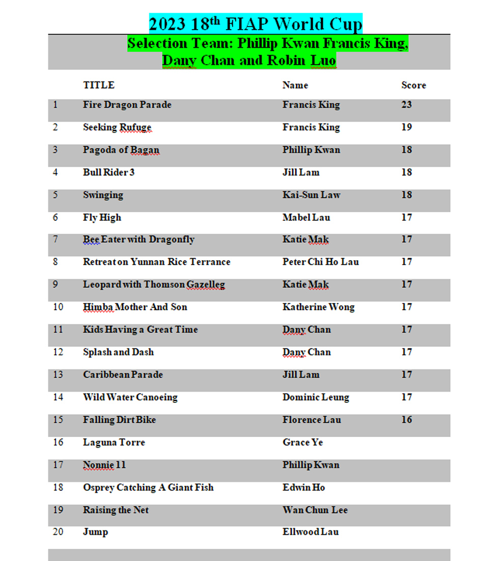 PSA PT 比賽作品 | PSA PT Interclub Gallery