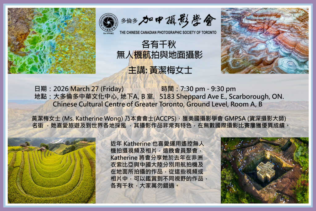 2026-03-27 各有千秋 無人機航拍與地面攝影主講: 黃潔梅女士 (Ms. Katherine Wong)